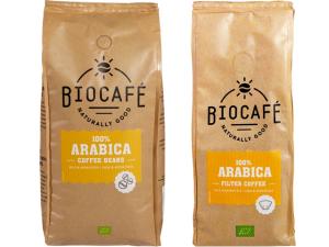 Biocafe 100% Arabica kofiebonen en filterkoffie met 15% korting