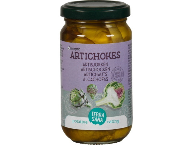 Ingredienten: Artisjokken* (60%), extra vierge olijfolie*, appelazijn*, zeezout, *= Biologisch