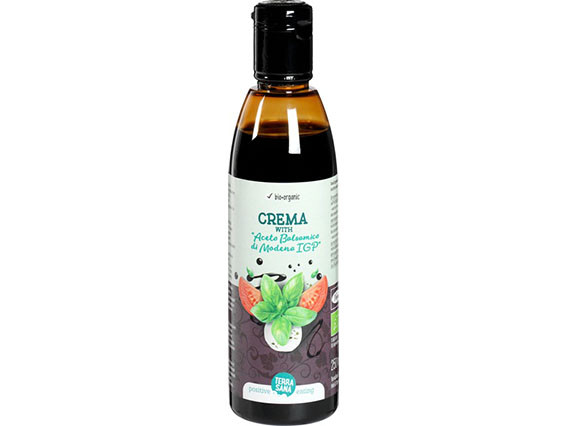De smaak van balsamicocrème lijkt op balsamicoazijn, maar is een stuk zoeter en stroperiger van structuur. Het wordt gemaakt van druivenmost en 20% balsamicoazijn. Om het iets te verdikken wordt maïszetmeel toegevoegd. Een superlekkere smaakmaker in een handig knijpflesje. Waar je het voor gebruikt? Je kunt er van alles mee. Vervang de granaatappelsap in muhammara (Syrische spread) door deze crema, karamelliseer er uien mee of geef je salade, geroosterde groente, vlees of kaasplankje een lekker laagje smaak. Balsamicostroop is ook supergeschikt om een bord mee te decoreren.