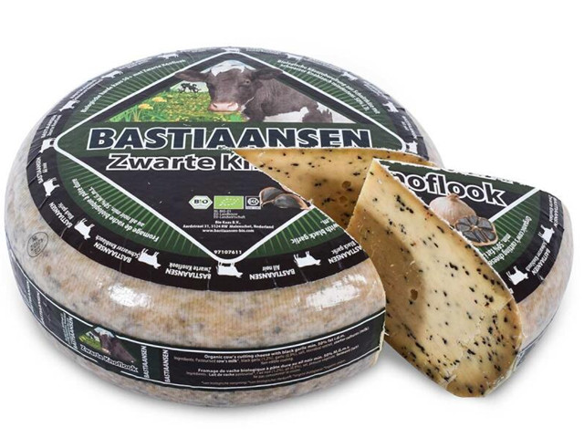 Ontdek de unieke Bastiaansen Zwarte Knoflookkaas, een kaas met zwarte gefermenteerde knoflook. Dankzij de karamellisatie krijgt de knoflook een zoetere smaak, terwijl subtiele tonen van tamarinde en balsamico zorgen voor een umami-ervaring, de vijfde smaak. Het opmerkelijke gemarmerde zuivel maakt het geheel compleet
