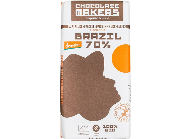 Deze pure chocola met zeezout is gemaakt van cacao van de biodynamische farm Bom Jesus in Brazilië. Verbouwd in harmonie met de natuur. Demeter, vegan, biodynamische landbouw en gemaakt op zonne-energie. Daarnaast is de chocolade glutenvrij en verpakt in een plasticvrije en composteerbare verpakking.