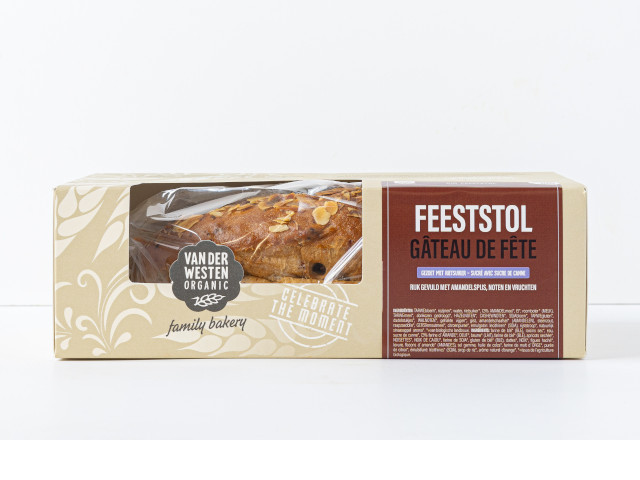 Ingredienten: TARWEBLOEM*, rozijnen*, amandelspijs* 14% (AMANDELMEEL*, rietsuiker*, EI*), water, ROOMBOTER* (MELK), TARWEVOLKORENMEEL*, abrikozen gedroogd*, HAZELNOTEN*, CASHEWNOTEN*, SOJABLOEM*, TARWEGLUTEN*, dadelstukjes*, AMANDELSCHAAFSEL*, WALNOTEN*, gedroogde vijgen*, gist, suiker*, zout, zonnebloemolie*, GERSTEMOUTMEEL*, rietsuiker*, EMULGATOR(SOJALECITHINE*), natuurlijk citrus aroma. * is van gecontroleerde biologische teelt
