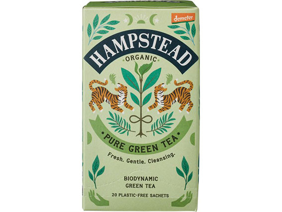 Verfrissend, zacht en boordevol antioxidanten. De biologische groene thee van Hampstead groeit in biodynamische tuinen. Ze selecteren alleen de fijnste Darjeeling-blaadjes voor een verrassend lichte en zachte smaak. De thee is geteeld volgens biodynamische principes en verpakt in plasticvrije, volledig composteerbare zakjes.