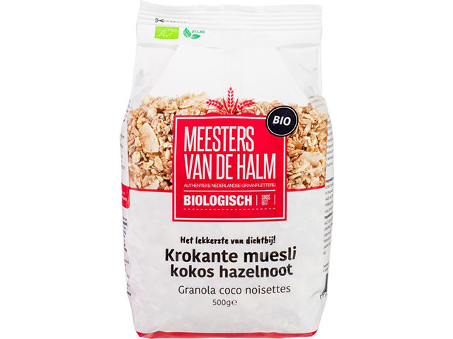 De combinatie van granen, kokos en hazelnoten maken deze muesli tot een heerlijk exotische muesli met een verfijnde smaak. De krokante muesli is gezoet met ruwe rietsuiker en bijzonder smaakvol.