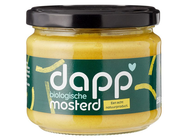Ingredienten: Water, MOSTERDZAAD*, natuurazijn*, zout, kurkuma*. * = van biologische oorsprong