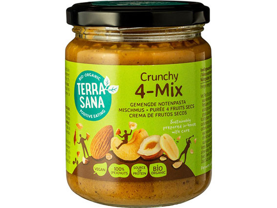 Een mix van geroosterde cashewnoten, amandelen, hazelnoten en pinda's met lekker knapperige stukjes voor een extra bite. De notenpasta heeft een zachte en lichtzoete smaak. Heerlijk op de boterham of om door baksels of smoothies te mengen. De notenpasta is uiteraard zonder toevoegingen. Hierdoor kan er na verloop van tijd een laagje olie op de notenpasta ontstaan. Gewoon even doorroeren en lekker genieten!