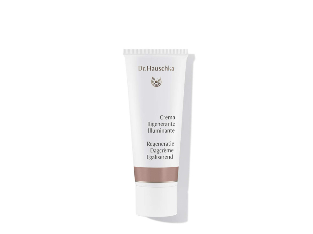Regeneratie Dagcrème Egaliserend zorgt voor een merkbaar gladdere huid en verfrist elke huidskleur met reflecterende, lichtgekleurde minerale pigmenten. De crème egaliseert lichte pigmentatie van de gezichtshuid, verzacht lijntjes en zorgt zo voor een levendig en egaal aanzien. De samenstelling van vitaliserende extracten van heilzame planten zoals rode klaver, bryophyllum en heermoes stimuleert de vochtregulatie van de huid. Waardevolle plantaardige oliën van avocado en olijven ondersteunen het herstellend vermogen en beschermen en verzorgen de huid op een aangename manier. Regeneratie Dagcrème Egaliserend trekt snel in de huid en laat elke teint stralen. De crème is ook een goede basis voor make-up.