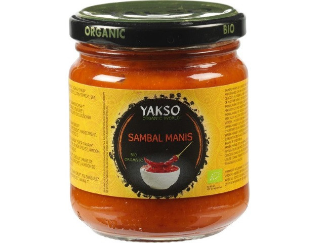 Ingredienten: Sambal oelek* (cayennepepers*, zout, zuurteregelaar: melkzuur), ui*, agavesiroop*, zonnebloemolie*, KETJAP MANIS* (melasse*, suiker*, SOJABONENSAP*,(water, SOJAbonen*(1%)) zeezout, knoflook*, koriander*, laurier*, citroengras*), verdikkingsmiddel: maiszetmeel*, zeezout*, knoflook*, verdikkingsmiddel: xanthaangom. * = Biologisch