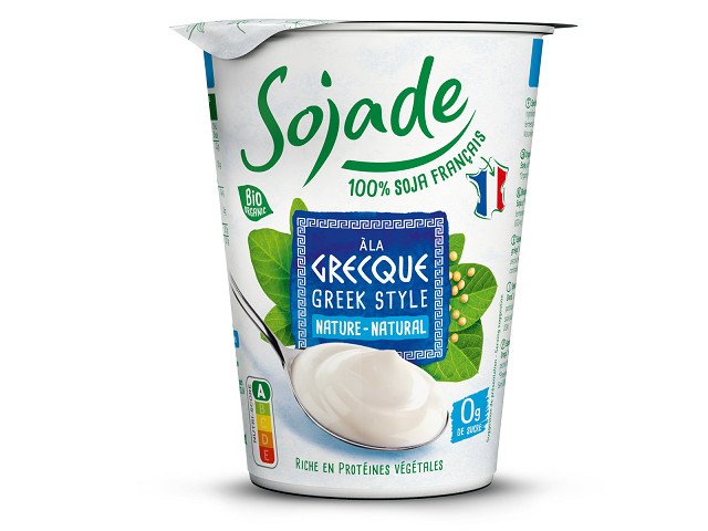 Sojade is een smaakvol en 100% zuivelvrij alternatief voor yoghurt. Sojade Griekse stijl is een bron van plantaardige eiwitten en laag in verzadigd vet. Verder is het GMO-vrij en gemaakt met Bifidus en Acidophilius culturen.