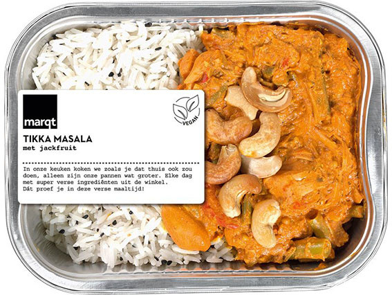 Ingredienten: 50,6% gekookte rijst (water, basmatirijst*), 18% jackfruit*, kokosmelk*, sperzieboon*, paprika*, ui*, zonnebloemolie*, gember*, tomatenpuree*, CASHEWNOOT*, knoflook*, zeezout, limoensap*, SESAMzaad*, paprikapoeder*, MOSTERDzaad*, rietsuiker*, garam masala* (koriander*, komijn*, kardemom*, paprika*, kaneel*, venkelzaad*, gember*, peper*), rode peper*, conserveringsmiddel: gebufferd azijn*, koriander*, kerrie* (MOSTERD*, koriander*, fenegriek*, komijn*,geelwortel*, rode peper*, knoflook*, zwarte peper*, lavaswortel*), kurkuma*, komijn*, korianderzaad*, citroensap*.* = van biologische oorsprong