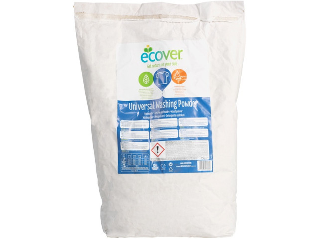 Ecover waspoeder universeel is een ecologisch poedervormig wasmiddel voor professioneel gebruik en is ontwikkeld voor het wassen van witte en kleurvaste kledij van katoen of synthetische vezels. Het verwijdert alle vet, eiwit of zetmeelhoudende vlekken. Het bevat bestanddelen tegen kalk en ook zuurstofbleekmiddelen die zorgen voor een optimaal wasresultaat. Ecover wasmiddel bevat geen optische witmakers. Deze witmakers weerkaatsen het licht en geven de illusie van een witte was. Ecover vindt dit niet eerlijk, en het is al helemaal niet goed voor het milieu. Ecover wasmiddel maakt je was zuiver schoon, met respect voor de natuur. Parfum: Bloemig pH: > 1% Dosering: 35g/5Kg linnen.