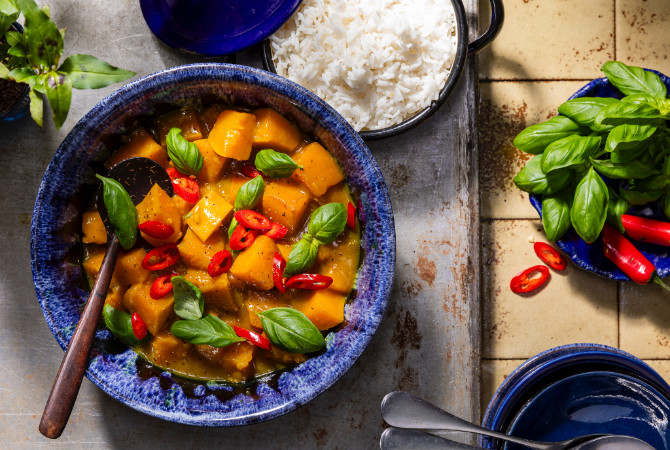 Ik vind stoofpotten gelijk aan liefdesbrieven, omdat ze met tijd en zorg gemaakt worden. Elke keer als ik deze pompoenstoofpot maak, word ik herinnerd aan thuis. Ik ben al 5 jaar niet meer teruggegaan naar Myanmar vanwege een brute militaire dictatuur. Ik denk aan mijn moeder en al mijn oma's die echt geweldige familie koks waren.